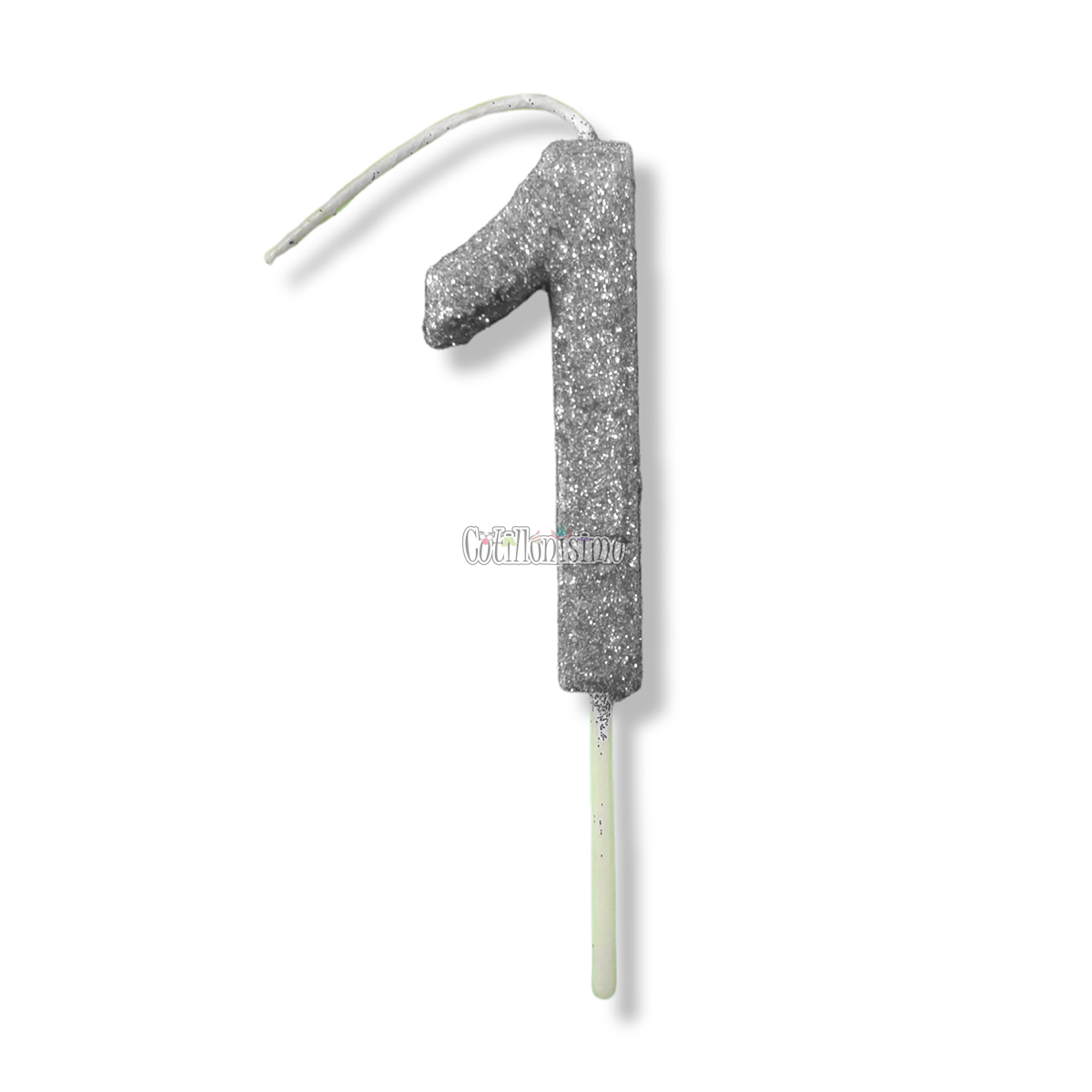 Vela Gibreada Numero 1 Color Plateado 11cm cantidad