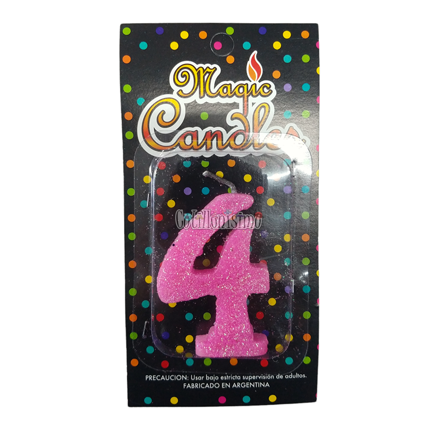 Vela Gibreada Numero 4 Color Rosa Magic Candles