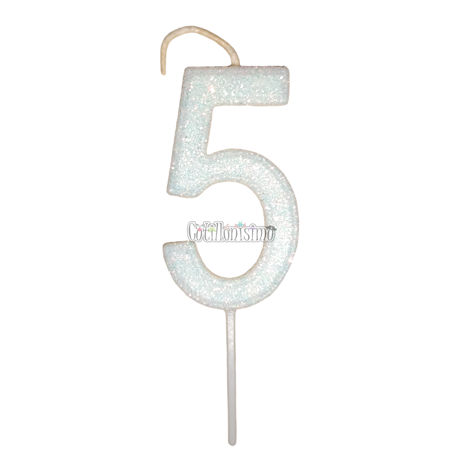 / Vela Gibreada Numero 5 Color Blanco 11cm