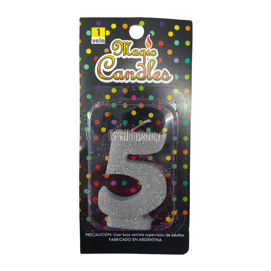 / Vela Gibreada Numero 5 Color Plateado Magic Candles