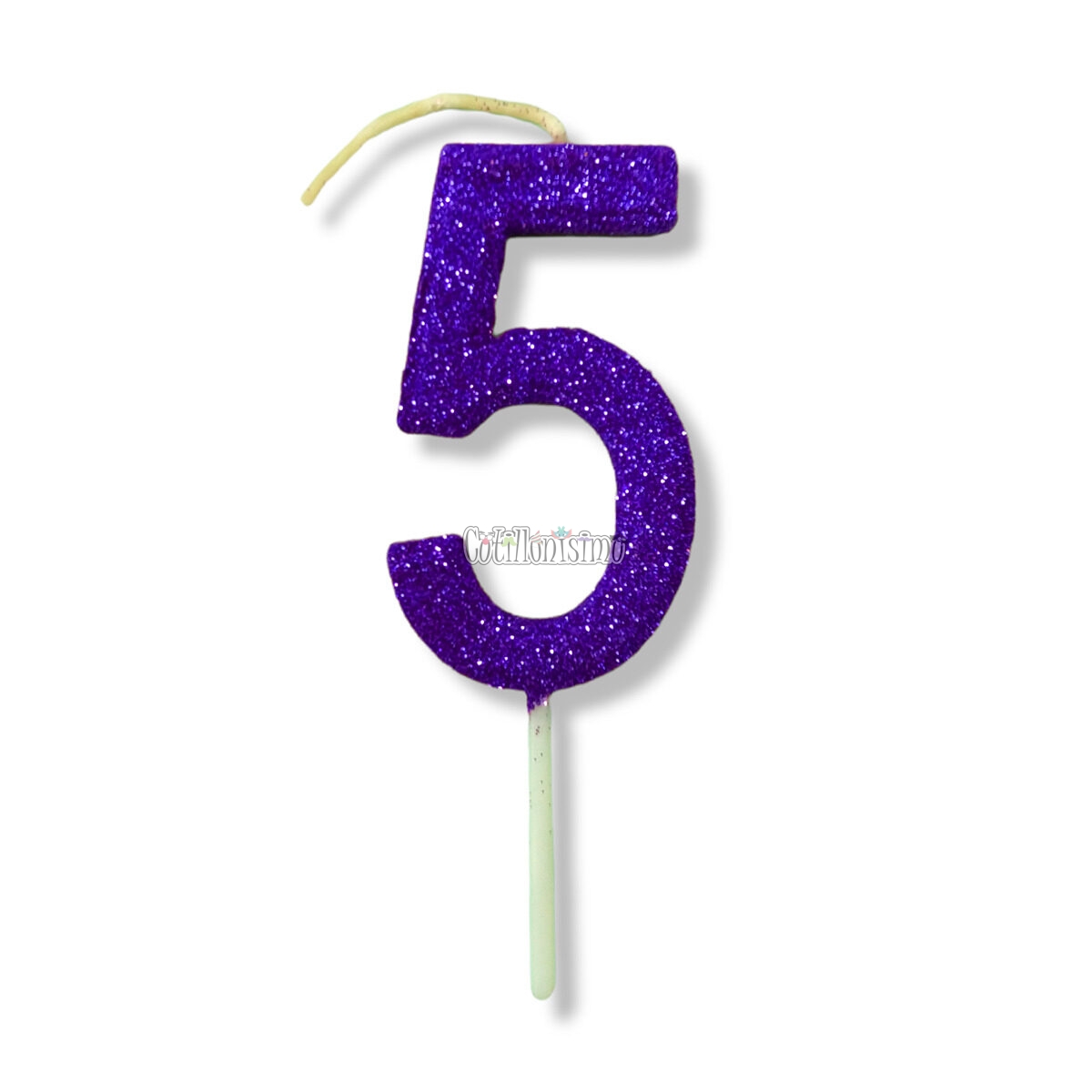 / Vela Gibreada Numero 5 Color Violeta 11cm