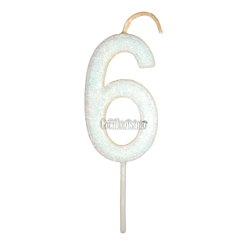 / Vela Gibreada Numero 6 Color Blanco 11cm