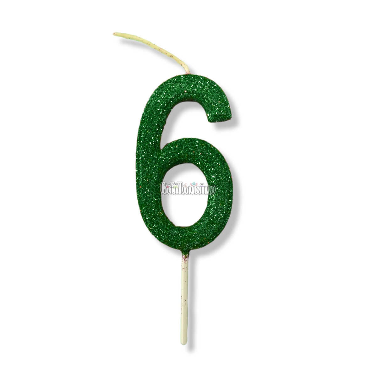 Vela Gibreada Numero 6 Color Verde Oscuro 11cm cantidad