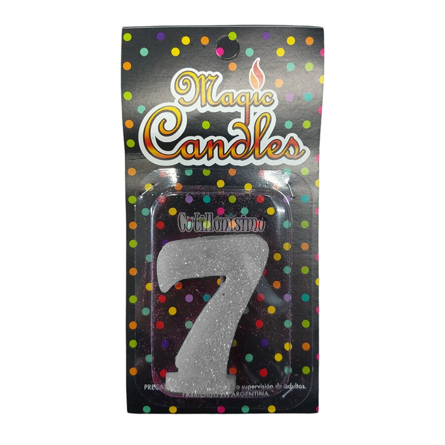 Vela Gibreada Numero 7 Color Plateado Magic Candles cantidad