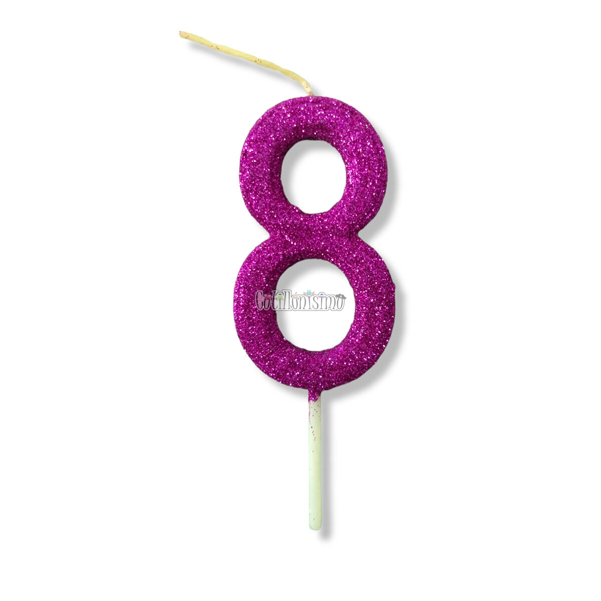 Vela Gibreada Numero 8 Color Fucsia 11cm cantidad