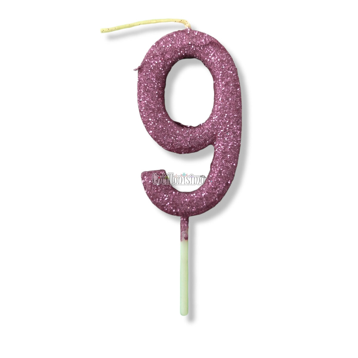 Vela Gibreada Numero 9 Color Rosa Gold 11cm