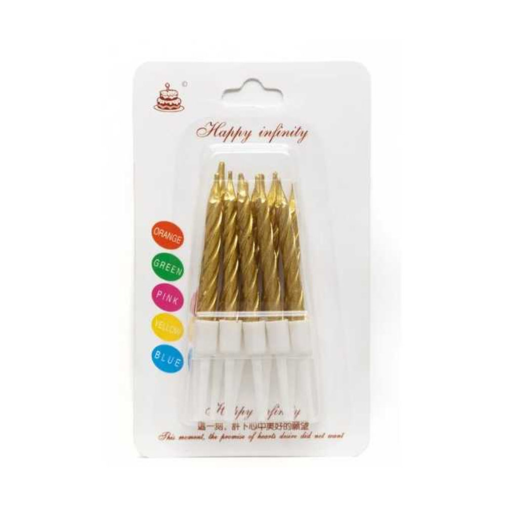 Vela Metalizada Color Oro Torneada con Porta Vela Blanco 7 cm x10 Unidades 2023012131614
