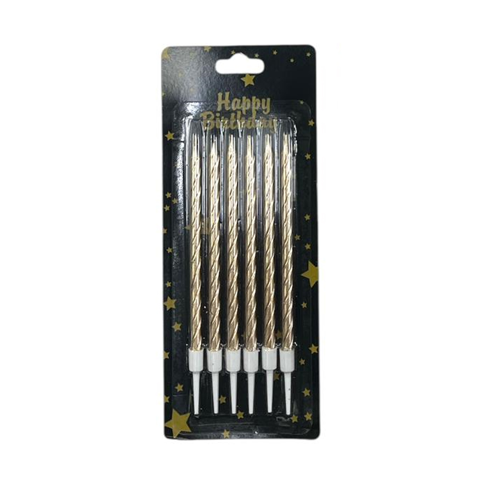 Vela Metalizada Torneada con Porta vela 13cm x6u Color Champagne Rose Gold