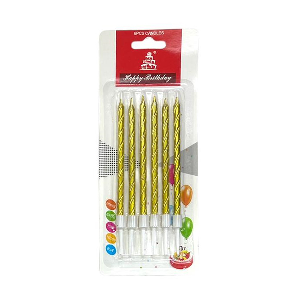 Vela Metalizada Torneada con Portavela 13cm x6u Color Dorado