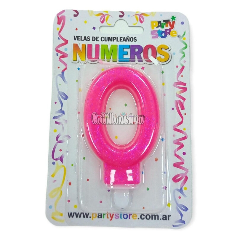 Vela Numero Rosa Brillos N° 0 Con Base Medida total aproximada: 9cm
