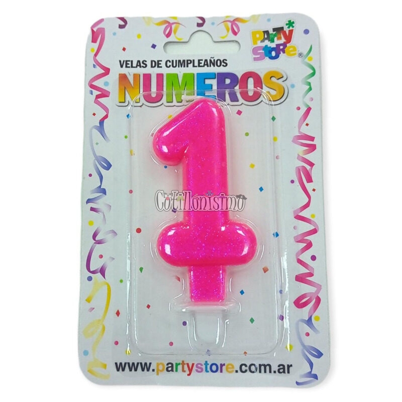 Vela Numero Rosa Brillos N° 1 Con Base Medida total aproximada: 9cm