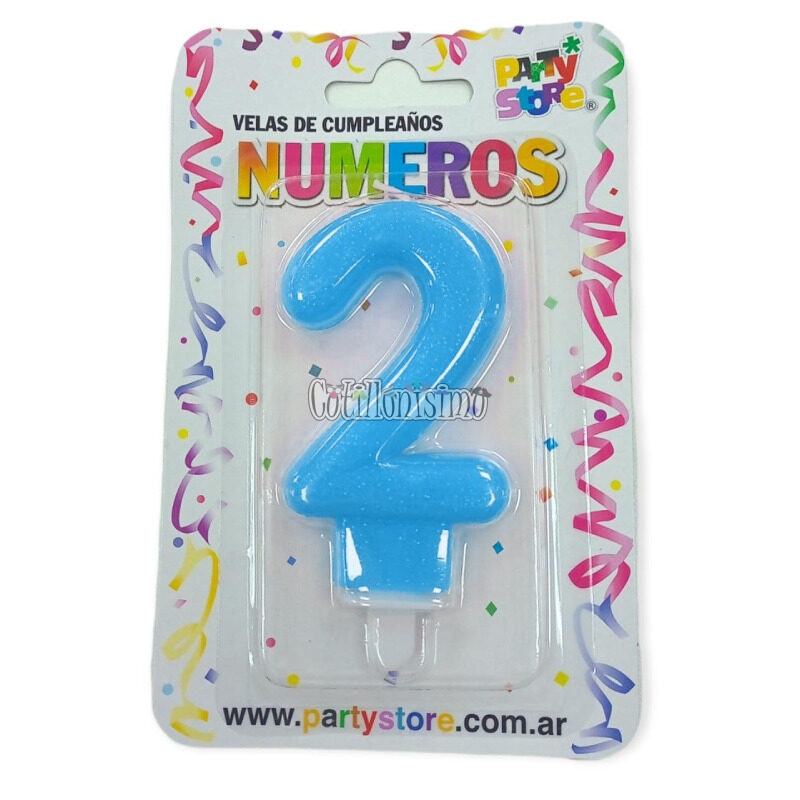 Vela Numero Celeste Brillos N° 2 Con Base Medida total aproximada: 9cm