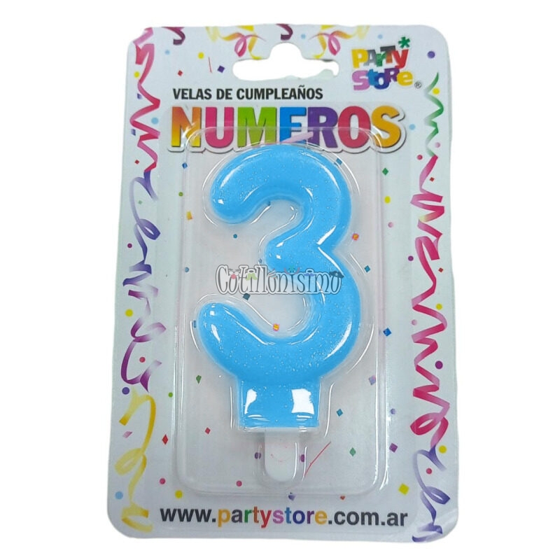 / Vela Numero 3 Celeste Brillos