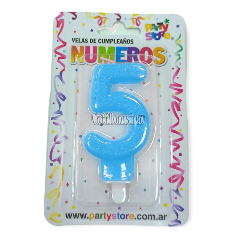 Vela Numero 5 Celeste Brillos