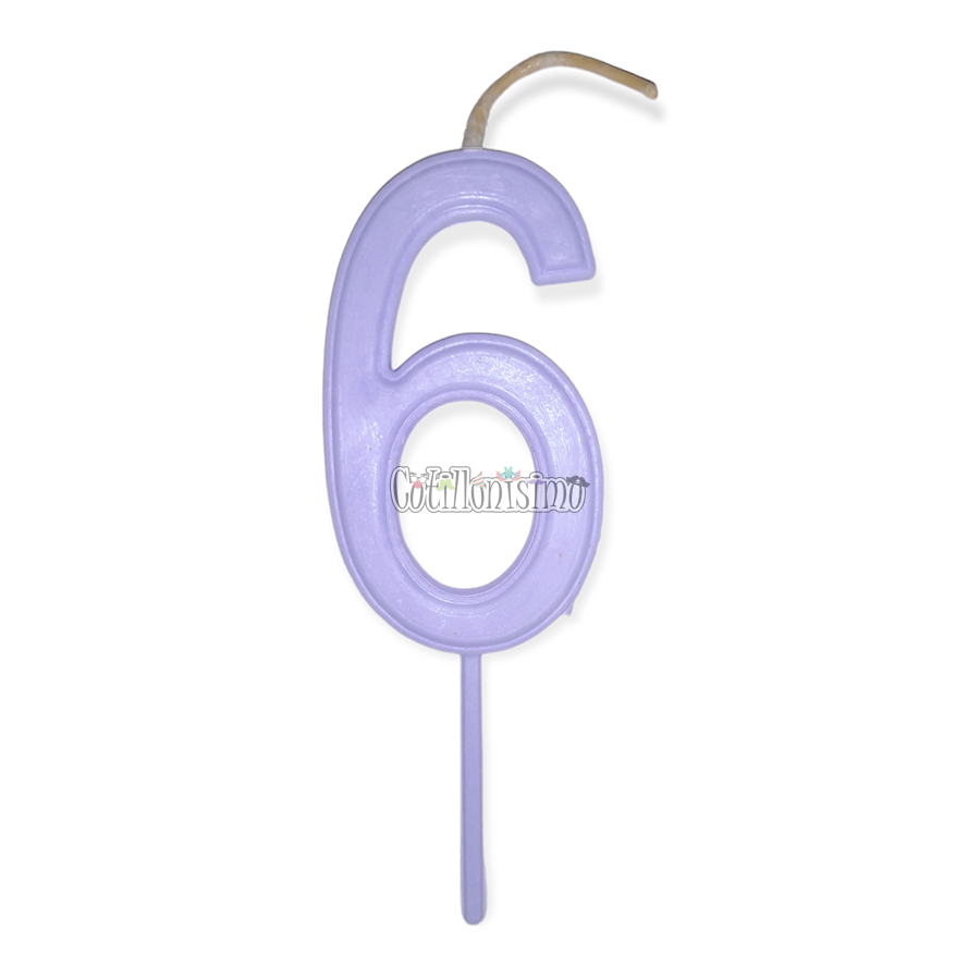 Vela Numero 6 Color Lila Pastel 11cm Medida: 11cm Material: Plástico
