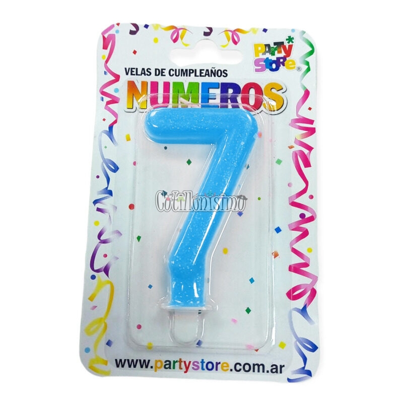 / Vela Numero 7 Celeste Brillos