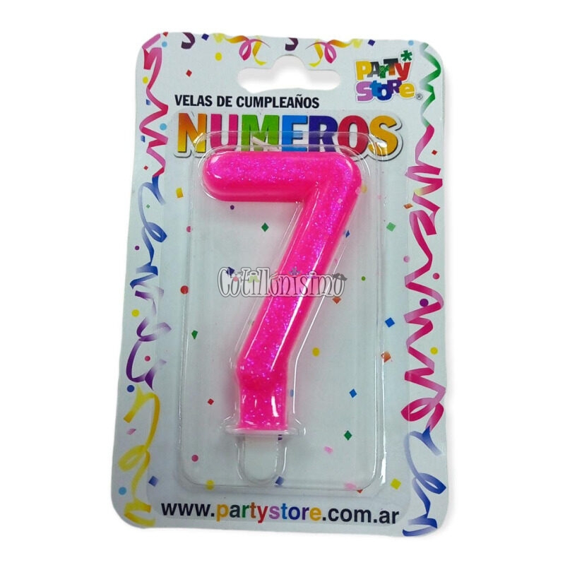 Vela Numero 7 Rosa Brillos cantidad