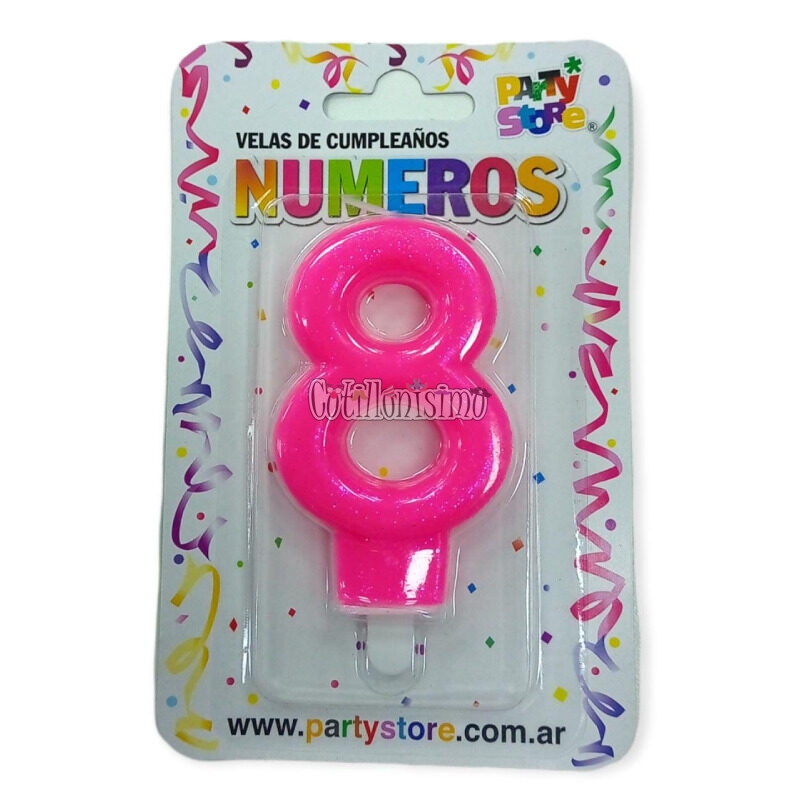 Vela Numero Rosa Brillos N° 8 Con Base Medida total aproximada: 9cm