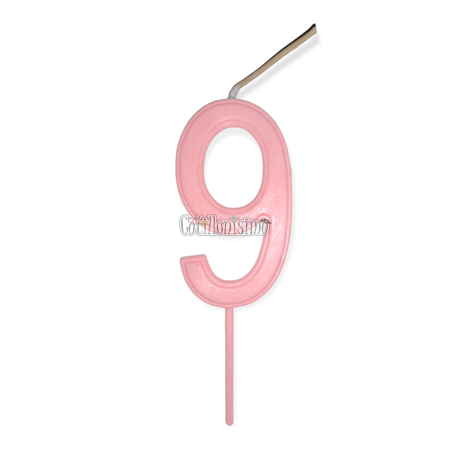 Vela Numero 9 Color Rosa Pastel 11cm cantidad