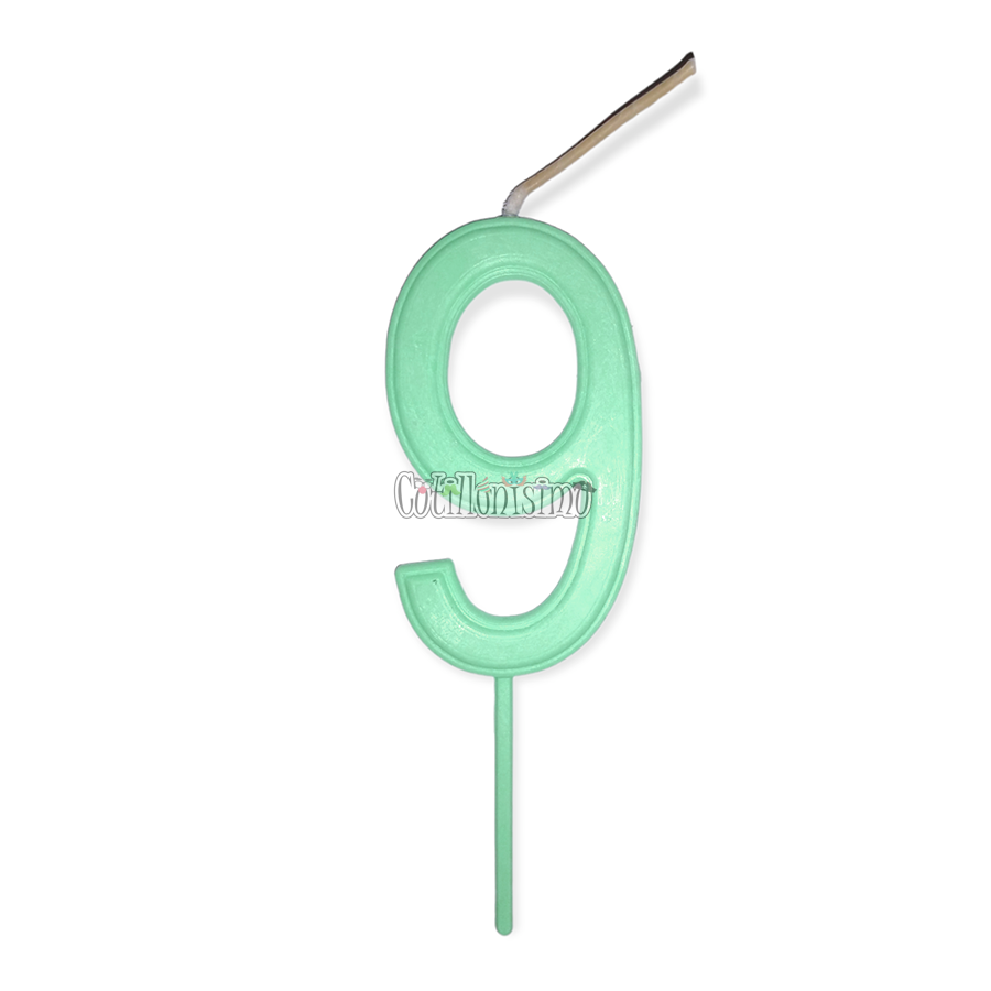 Vela Numero 9 Color Verde Pastel 11cm cantidad