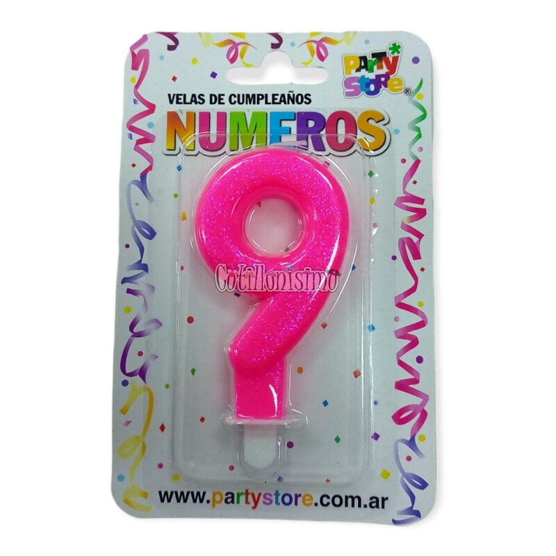Vela Numero Rosa Brillos N° 9 Con Base Medida total aproximada: 9cm