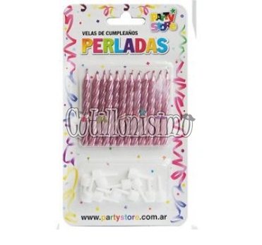 Vela Perlada Rosa X12 (Tamaño 6cm) Incluye 12 Bases Porta Vela