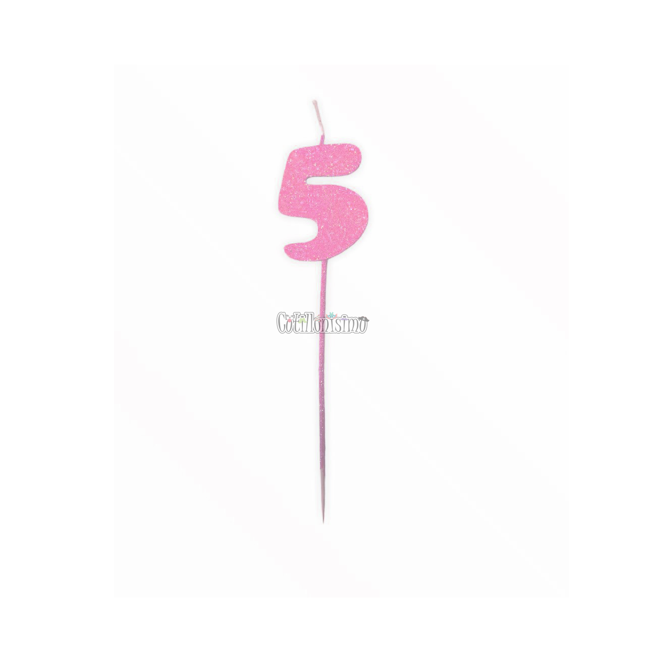 / Vela Pinche Gibreada Nº5 Color Rosa