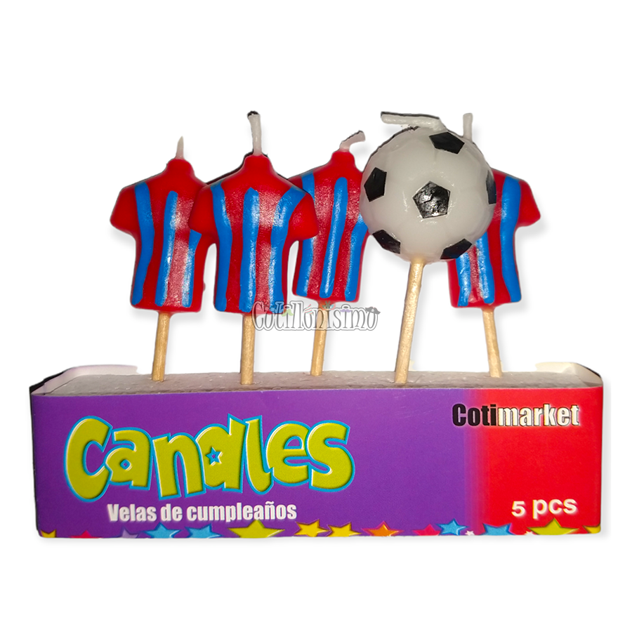 Velas Camiseta y Pelota “SAN LORENZO” x5u Contiene 4 Velas de Camiseta y una Vela de Pelota