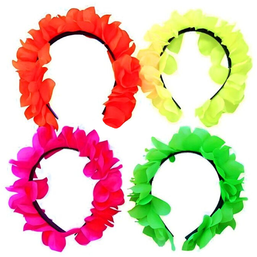 Vincha Plastica con Flores Lisas Fluo Hawaiano – Hawaiana Colores Surtidos x1 Unidad