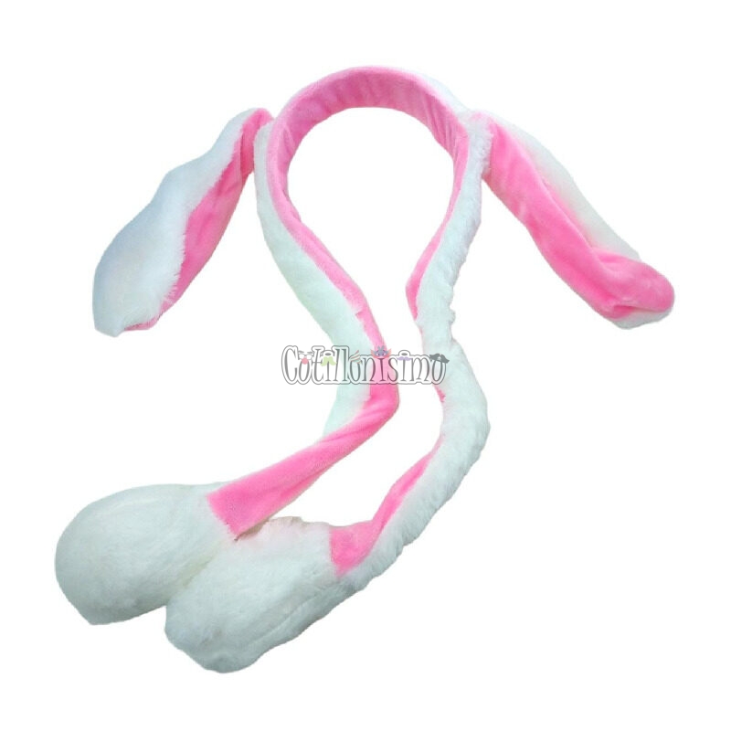 Vincha Conejo Orejas Moviles Blanco y Rosa