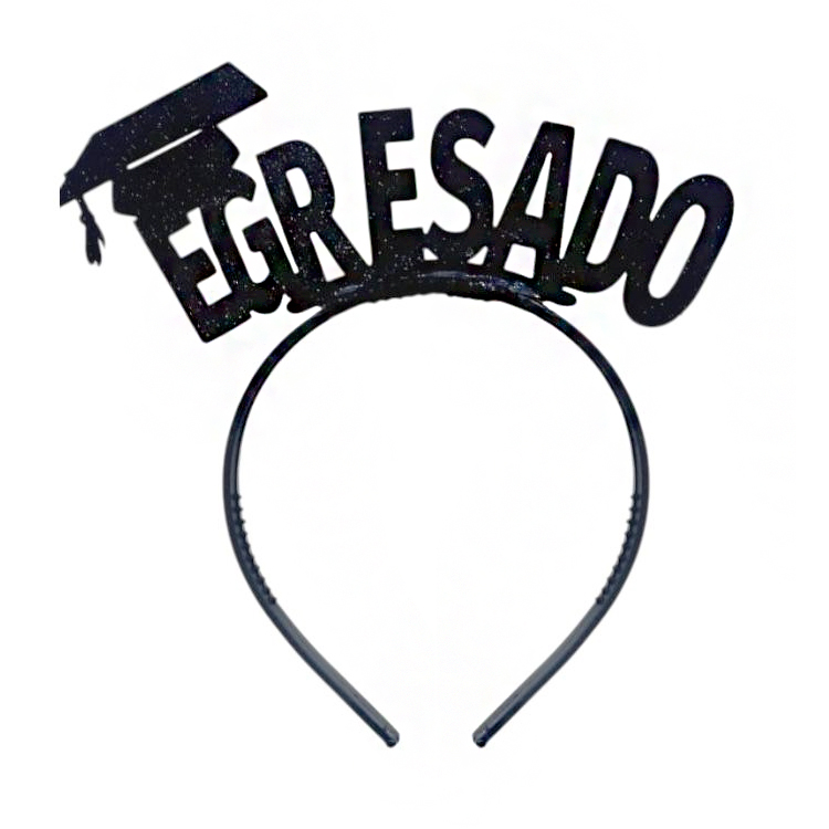 Vincha Goma Eva EGRESADO Negro Glitter cantidad