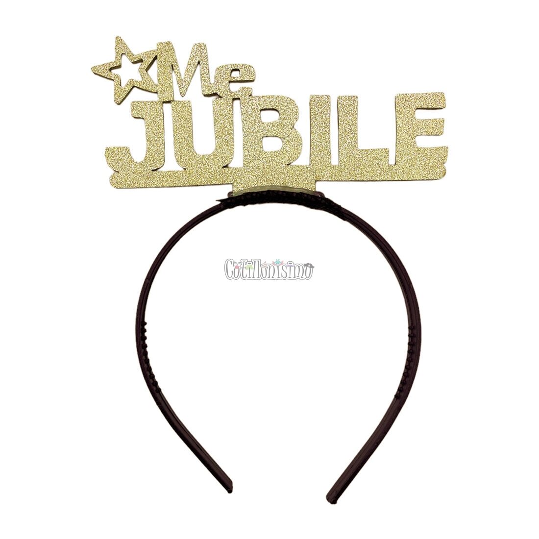 Vincha Goma Eva ME JUBILE Dorado Glitter