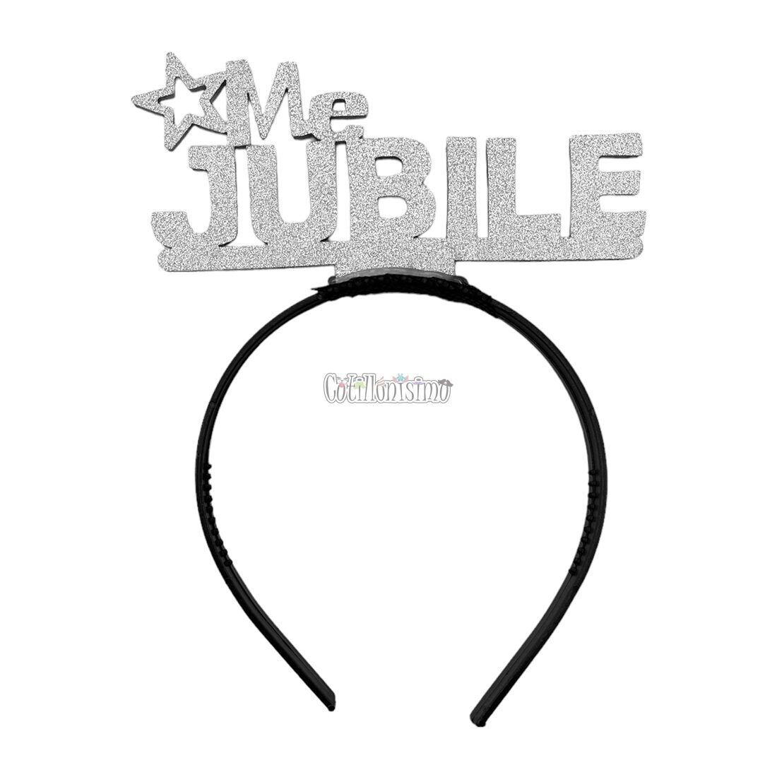 Vincha Goma Eva ME JUBILE Plateado Glitter cantidad