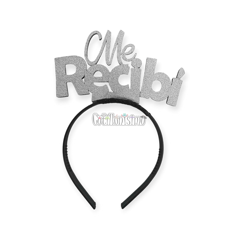 Vincha Goma Eva Me Recibi Plateado Glitter Trokelitos – TKS Medidas aproximadas: 15 cm x 7 cm