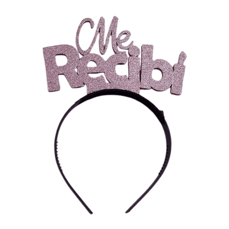 Vincha Goma Eva Me Recibi Rosa Glitter cantidad