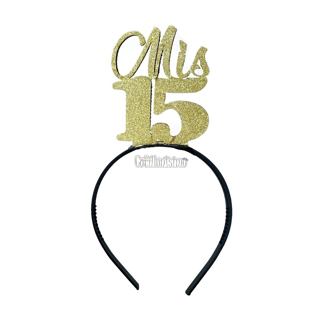 Vincha Goma Eva Mis Quince Quinceañera Color Oro Gibre Trokelitos – TKS Medidas aproximadas: 15 cm x 7 cm