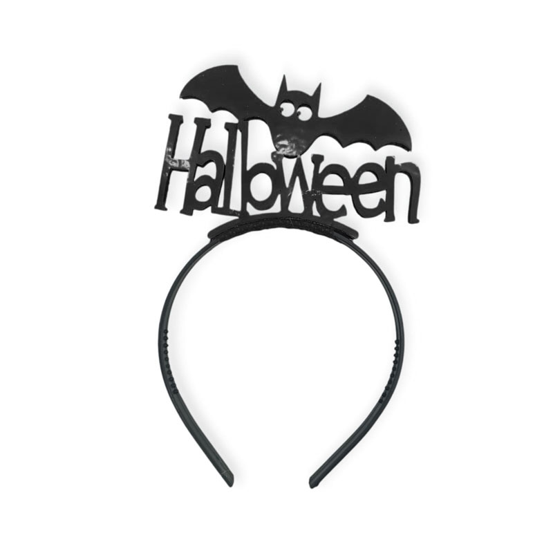 / Vincha Happy Halloween Murcielago Negro Glitter