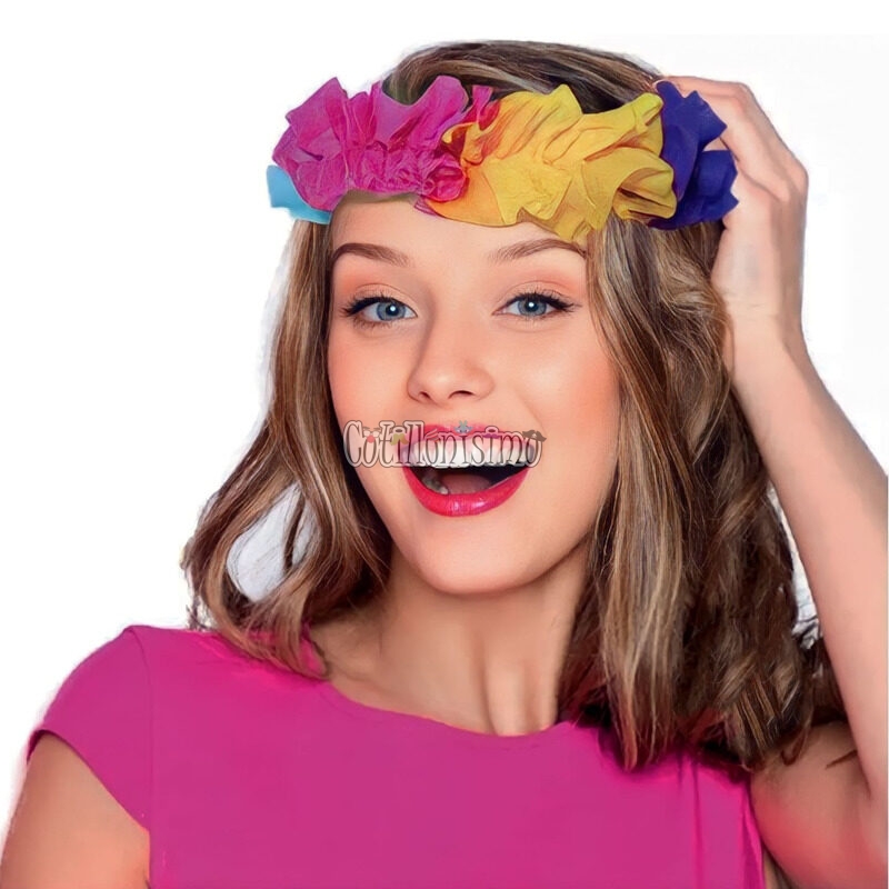 Vinchas Corona Hawaianas Tela Friselina x5 Unidades Talle Unico Los colores pueden variar y se entregan de forma surtida segun disponibilidad del stock