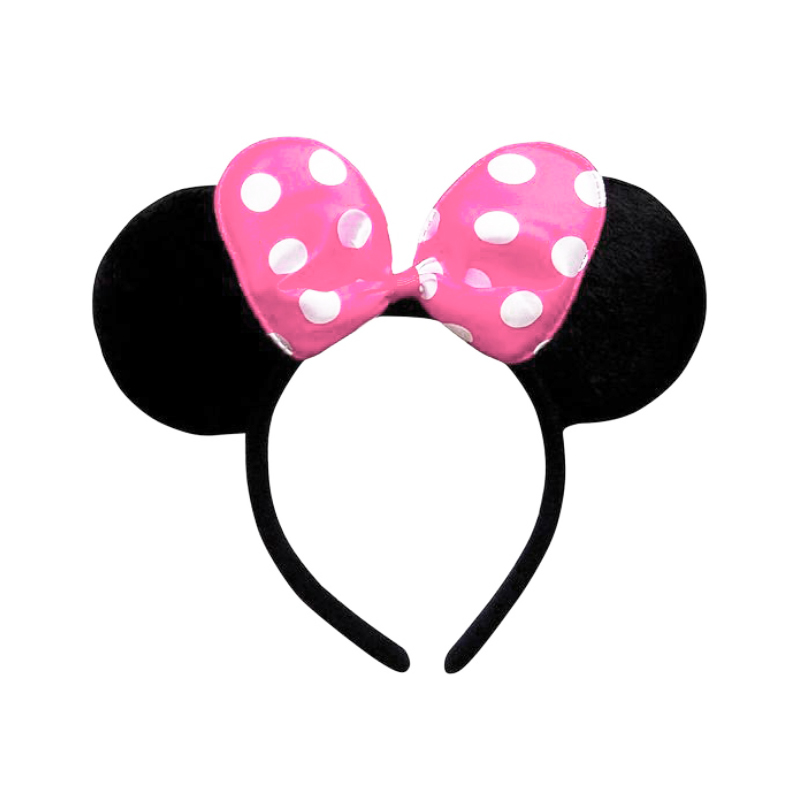 Color: Orejitas negras y el moño rojo / rosa con lunares blancos.