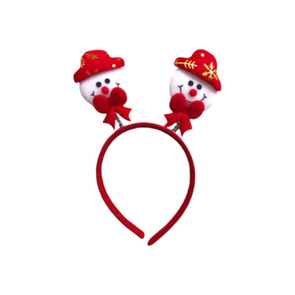 VINCHA NAVIDEÑO MUÑEQUITO DE NIEVE Navidad Vincha resorte con 2 muñecos de nieve Moño rojo Navideño