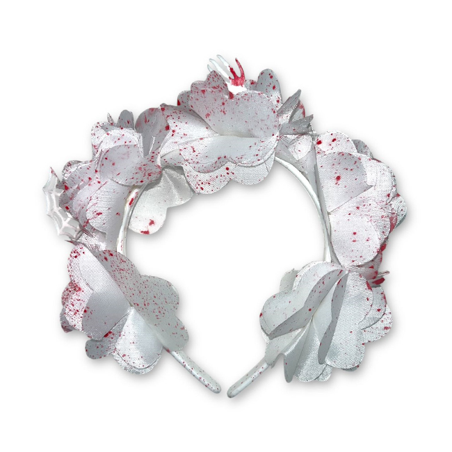Vincha Halloween Novia Flores Blancas con Manchas de Sangre y detalles en Goma Eva x1 Unidad Trokelitos – TKS