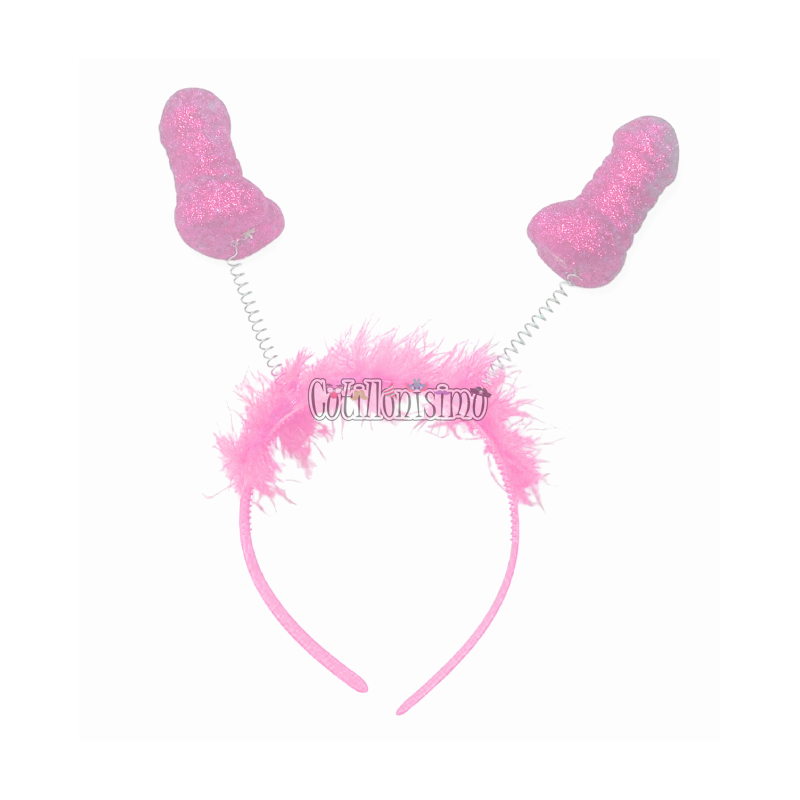 Vincha Resorte Penecitos – Penes Telgopor Brillo Glitter con Plumas Rosas x1 Unidad
