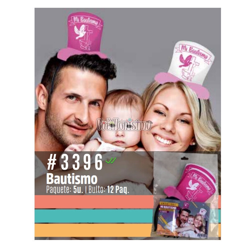 Vincha Tries Mi Bautismo Nena – Rosa X5 Unidades Medidas Aproximadas de la galera: 11,5 cm x 14,5cm
